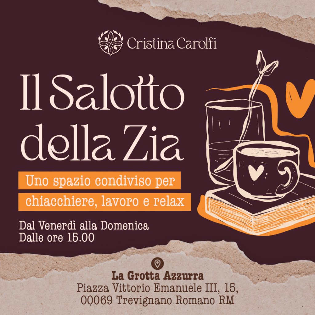 Tra i miei appuntamenti preferiti c’è il “Salotto della Zia”, un momento intimo e conviviale per riscoprire il piacere dello stare insieme: un luogo dove ci si può incontrare, chiacchierare, leggere o lavorare in tranquillità.